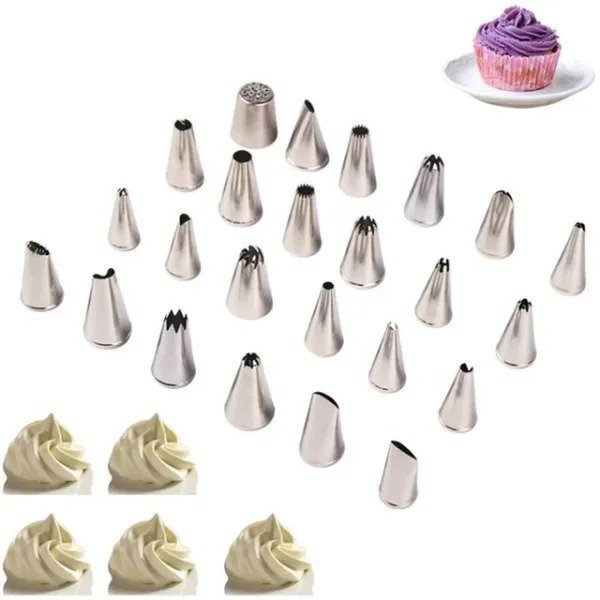 Unleash your creativity with this 24-Piece Stainless Steel Nozzle Set, perfect for decorating cakes, cupcakes, cookies, and desserts. Whether you’re a professional baker or a home enthusiast, this versatile set offers a variety of piping tips to create stunning designs—from delicate flowers to elegant swirls and borders.