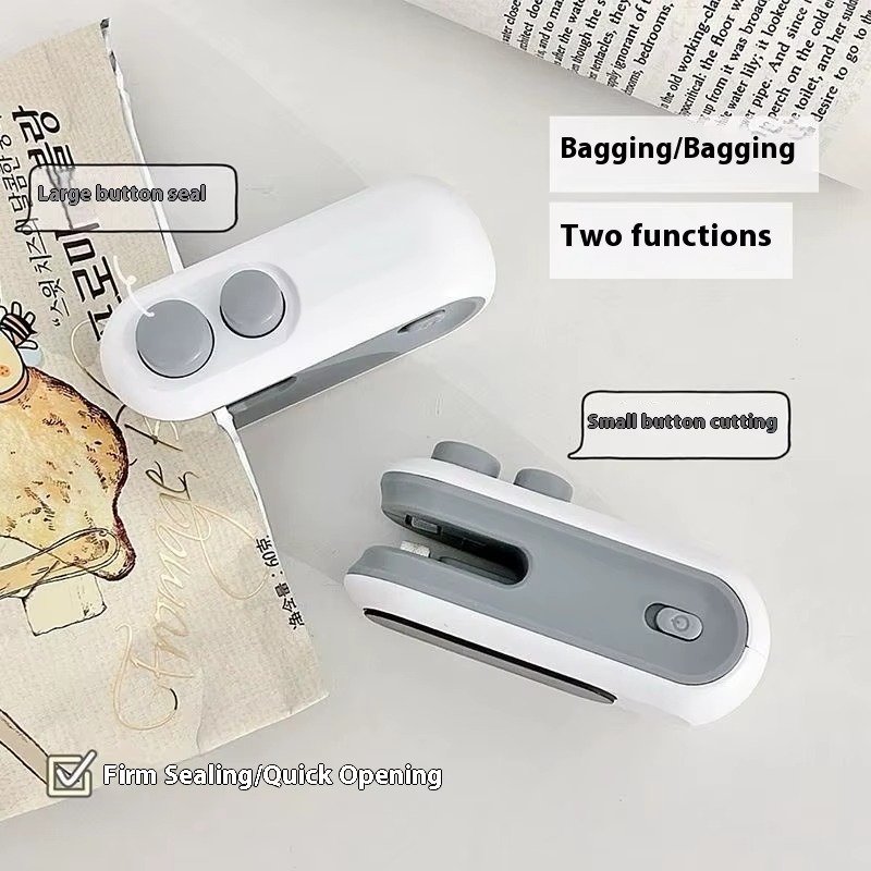 2in1 Electric Mini Heat Sealing Machine Handheld Kitchen Plastic Bag Sealer with Bag Clips for Food Storage Bags