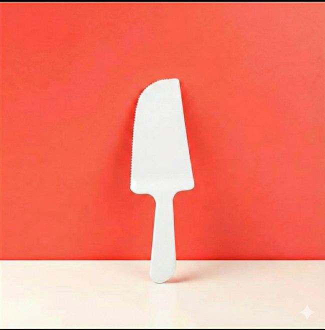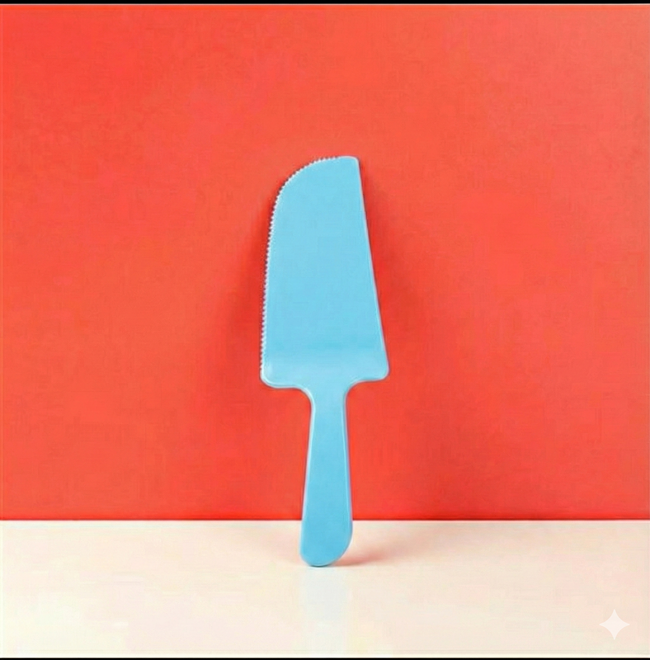 A simple, safe, and handy cake cutter designed for birthdays, parties, and home events. Made from food-grade PS plastic, this knife lets you slice cakes easily without worrying about sharp metal blades.