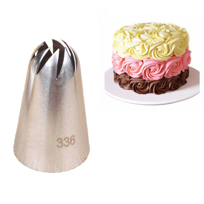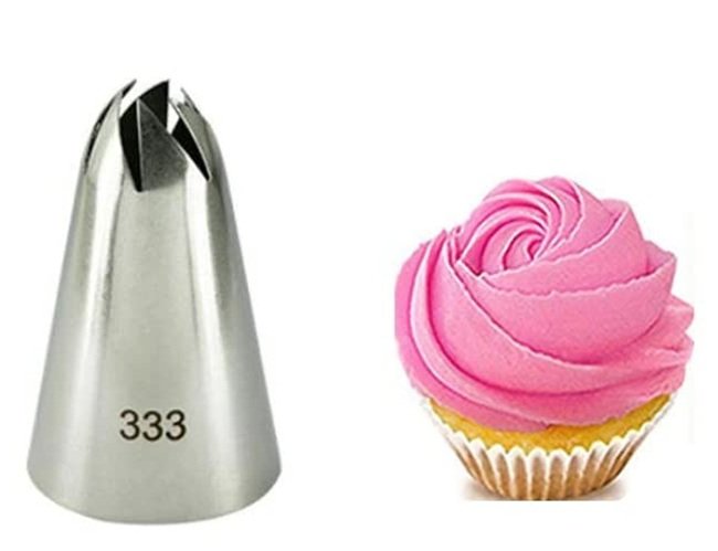 This stainless steel 333 piping nozzle is designed for creating perfect rose swirls, ruffles, and floral cupcake tops. The angled star opening gives smooth, layered petals with a natural rose look. Ideal for buttercream and whipped cream decorations.