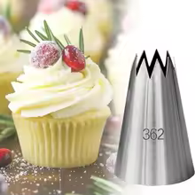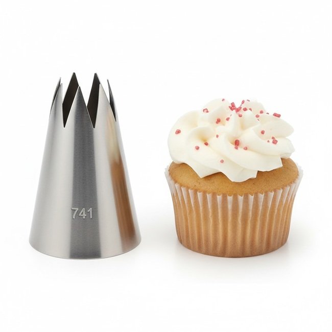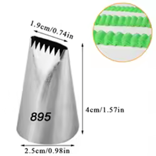 The 195 star nozzle forms deep ridged swirls, shells, and textured peaks. Its sharp multi-teeth design produces neat, defined patterns. Perfect for piping meringues, cookies, cupcakes, and cake borders.