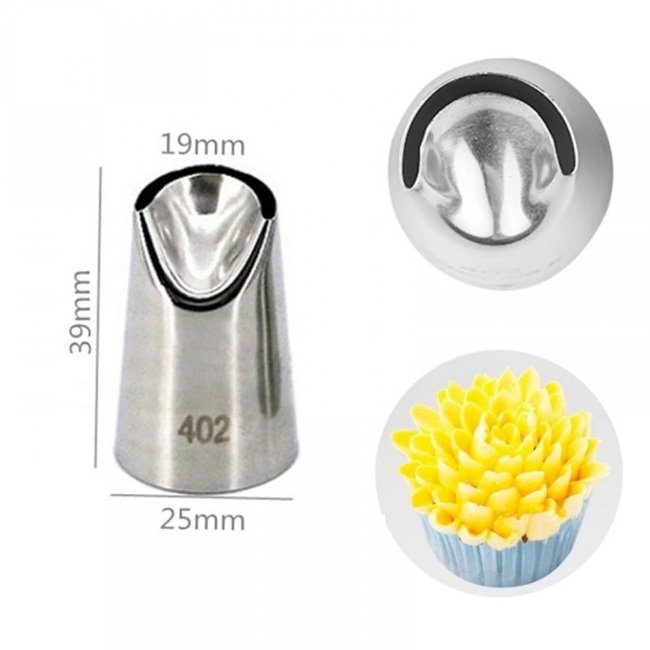 The 127 piping nozzle helps you create full, open flowers like roses, peonies, and camellias. It produces soft, rounded petals with smooth curves, ideal for beautiful floral cake decorations.