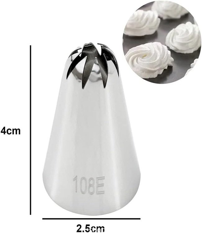 এই নোজলটি দিয়ে খুব সহজেই কেক, কাপকেক, পেস্ট্রি এবং কুকিজে সুন্দর ডিজাইন করা যায়। এর ধারালো ও সমান দাঁতযুক্ত মুখ নিখুঁত সোয়্যরেল, রোজেট, স্টার, বর্ডার এবং টেক্সচারড ডিজাইন তৈরি করে।