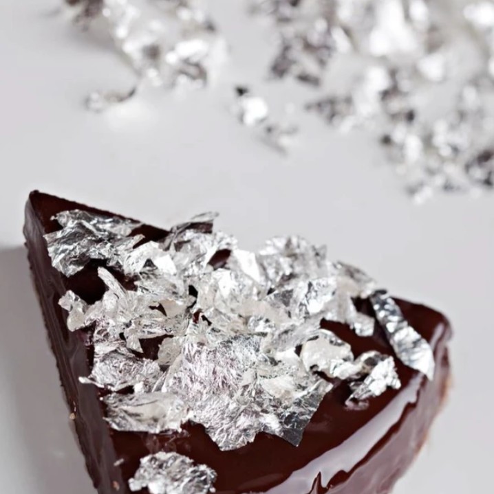 Premium edible silver leaf for decorating desserts, cakes, pastries, drinks, and more