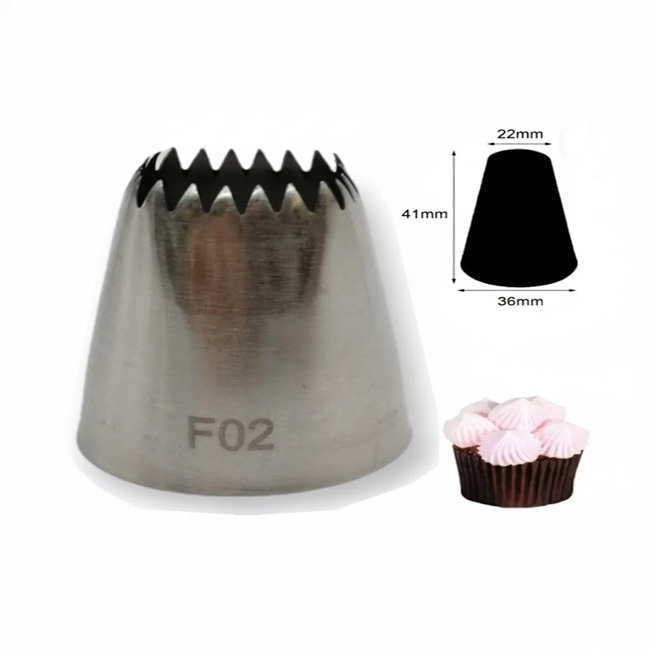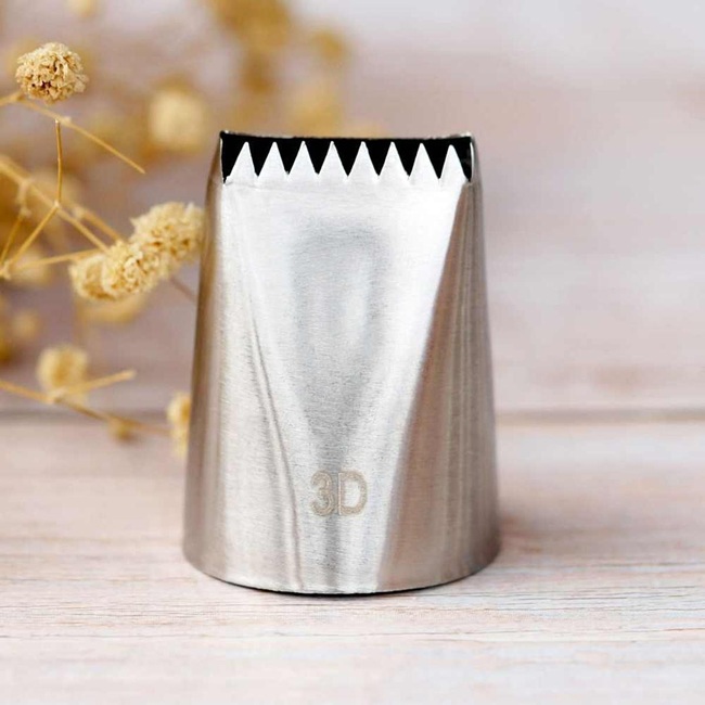 এই নোজলটি দিয়ে খুব সহজেই কেক, কাপকেক, পেস্ট্রি এবং কুকিজে সুন্দর ডিজাইন করা যায়। এর ধারালো ও সমান দাঁতযুক্ত মুখ নিখুঁত সোয়্যরেল, রোজেট, স্টার, বর্ডার এবং টেক্সচারড ডিজাইন তৈরি করে।